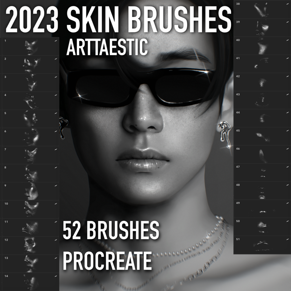 This purchase consists of 52 high quality skin stamp brushes for Procreate