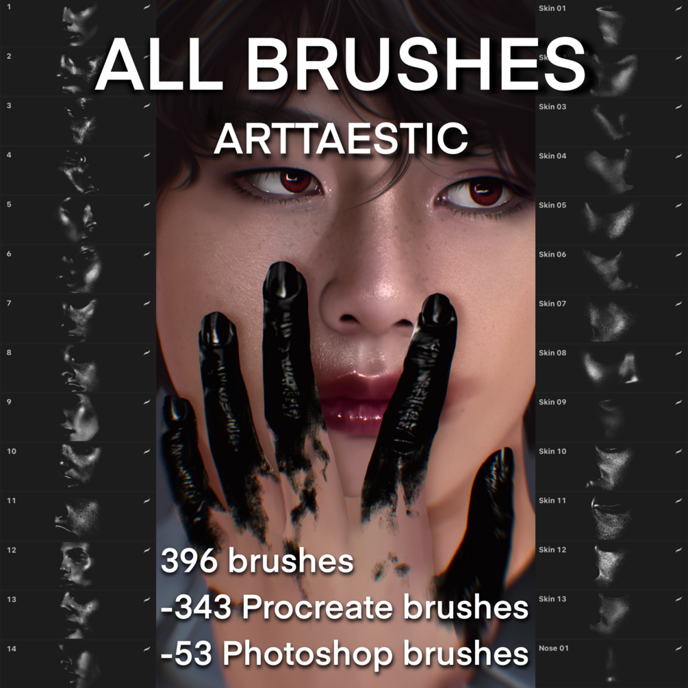 Around 300 of the brushes are skin brushes, but there are also brushes for sketching, base, blending, hair, glitter, eyebrows, lashes and more!